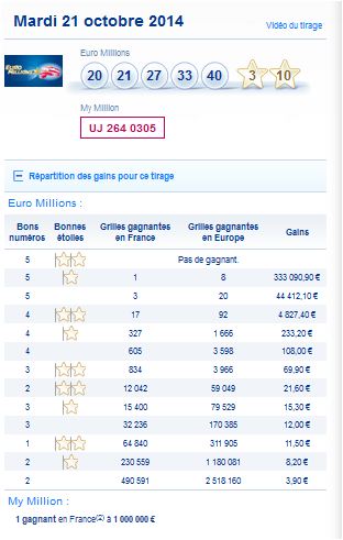Résultat Tirage Euro Millions du mardi 21 octobre 21/10