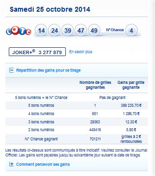 Loto tirage du samedi 25 octobre 2014