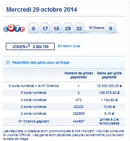 Tirage du mercredi 29 Octobre 2014