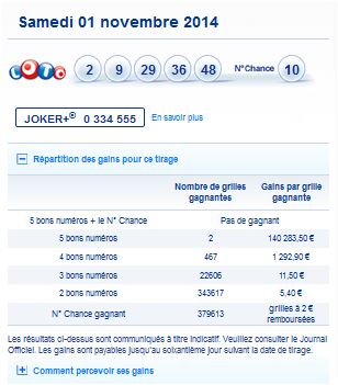 Loto tirage du samedi 1 Novembre 2014