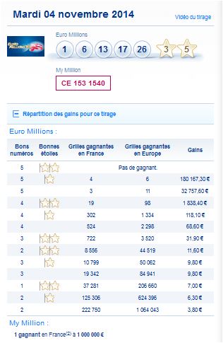 euromillion-my million- mardi – résultat-rapport-tirage-numéros-gagnants.
