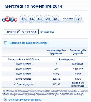 Seuls les résultats des tirages publiés au Journal Officiel font foi.
