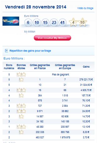 euromillion-my million – résultat et rapport du tirage et numéros gagnants.