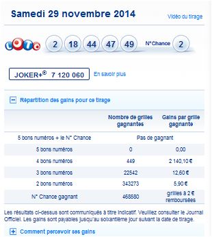 Loto tirage du samedi 29 Novembre 2014