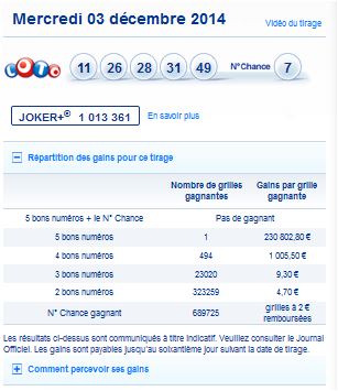 Seuls les résultats des tirages publiés au Journal Officiel font foi.