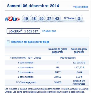 Loto tirage du samedi 6 décembre 2014