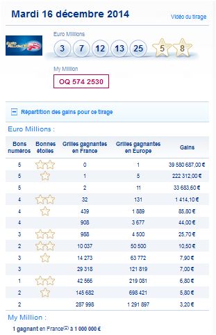 euromillion-my million- mardi – résultat-rapport-tirage-numéros-gagnants.