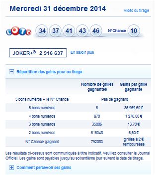 Seuls les résultats des tirages publiés au Journal Officiel font foi.