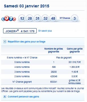Loto tirage du samedi 3 janvier 2015