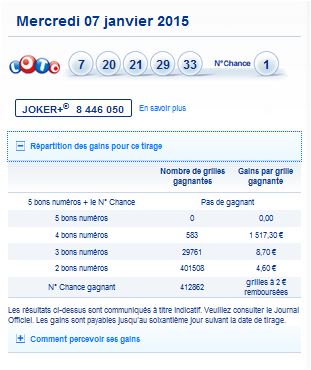 Seuls les résultats des tirages publiés au Journal Officiel font foi.