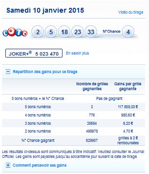 Loto tirage du samedi 10 janvier 2015