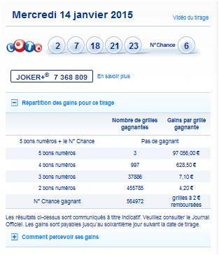 Tirage du mercredi 14 janvier 2015
