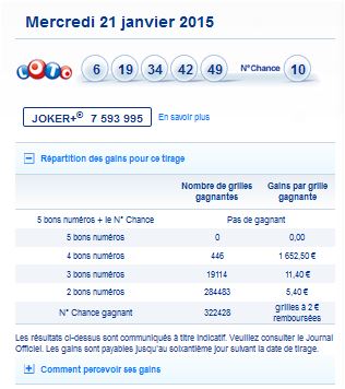 Seuls les résultats des tirages publiés au Journal Officiel font foi.