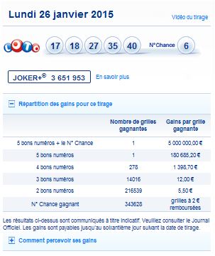 Seuls les résultats des tirages publiés au Journal Officiel font foi.