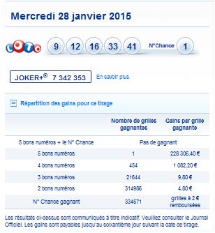 Tirage du mercredi 28 janvier 2015