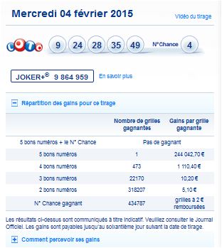 Tirage du mercredi 4 février 2015