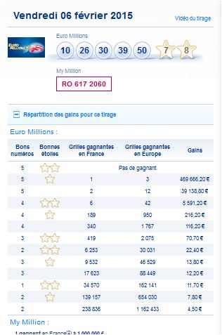 euromillion-my million – résultat et rapport du tirage et numéros gagnants.