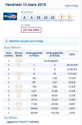 euromillion-my million – résultat et rapport du tirage et numéros gagnants.
