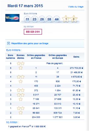 Résultat Tirage Euro Millions du mardi 17 mars 2015