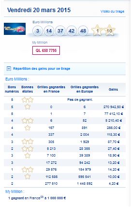 Résultat Tirage Euro Millions et My Million