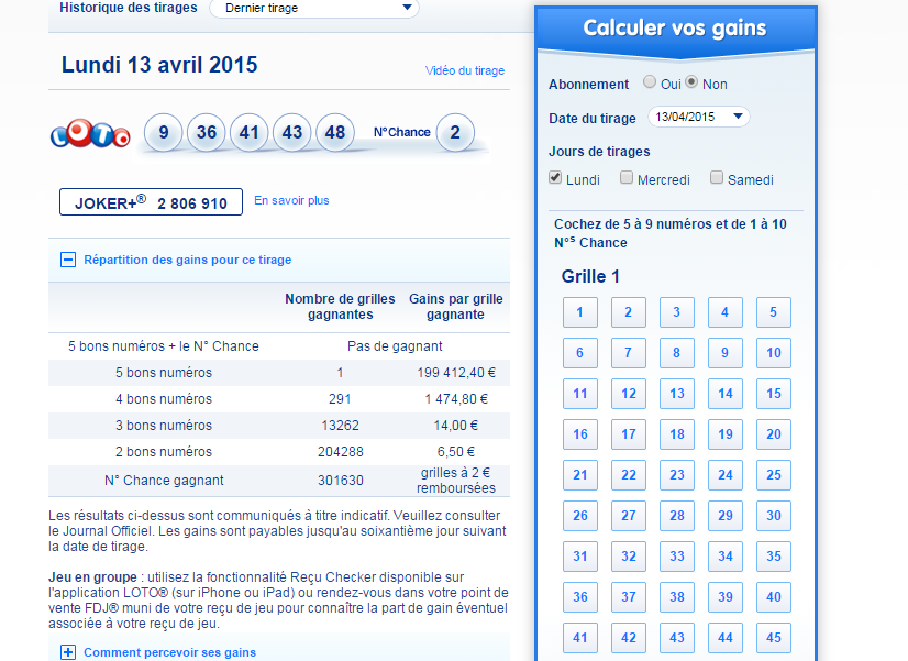 LOTO-résultat du tirage du Lundi 13 avril 2015