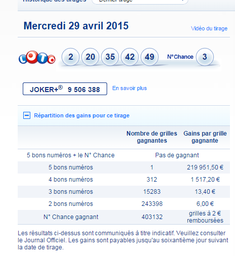 Seuls les résultats des tirages publiés au Journal Officiel font foi.