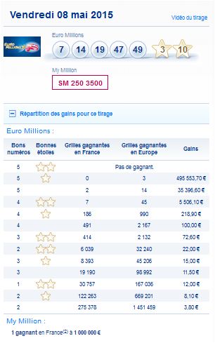 Résultat Tirage Euro Millions et My Million