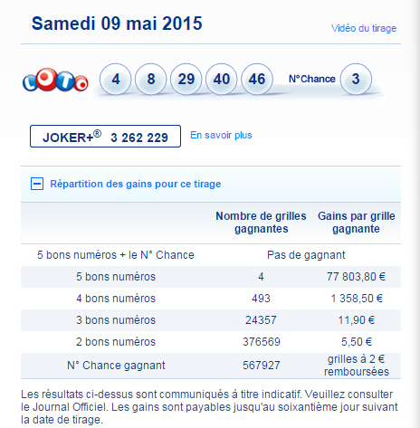 Seuls les résultats des tirages publiés au Journal Officiel font foi.