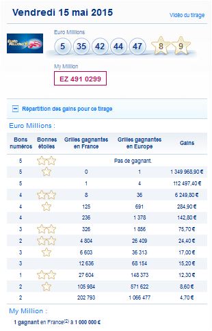 euromillion-my million – résultat et rapport du tirage et numéros gagnants.