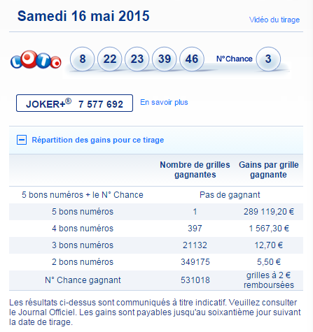 Loto tirage du samedi 16 mai 2015