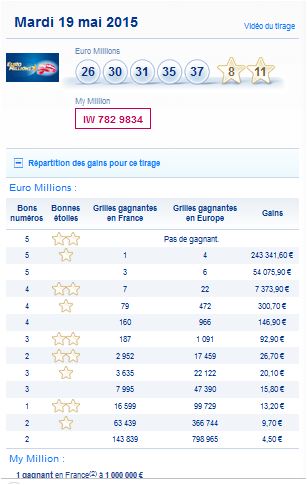 Résultat Tirage Euro Millions et My Million