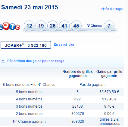 Seuls les résultats des tirages publiés au Journal Officiel font foi.