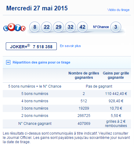 Seuls les résultats des tirages publiés au Journal Officiel font foi.