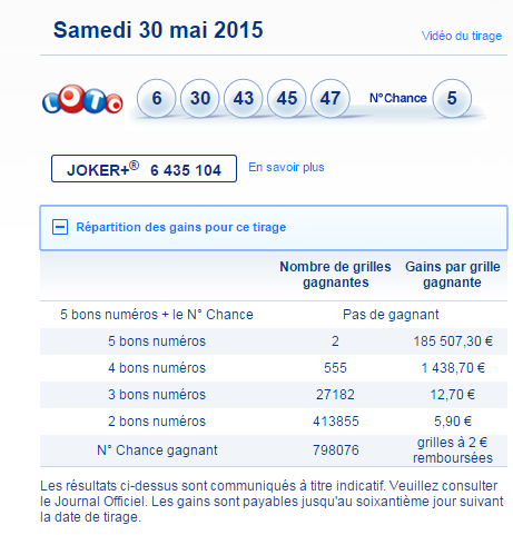 Seuls les résultats des tirages publiés au Journal Officiel font foi.