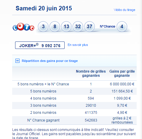 Loto tirage du samedi 20 juin 2015