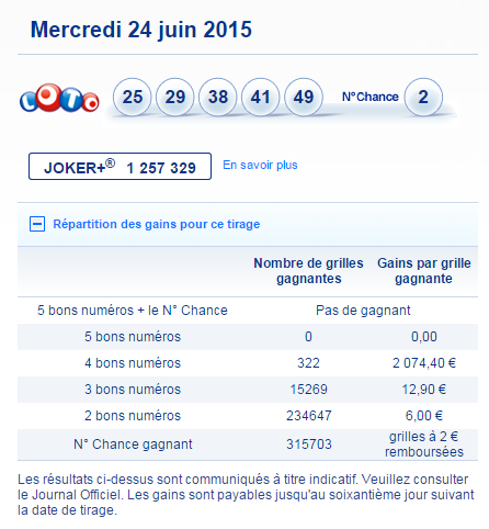 Seuls les résultats des tirages publiés au Journal Officiel font foi.