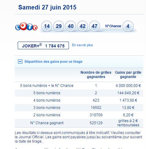 Seuls les résultats des tirages publiés au Journal Officiel font foi.