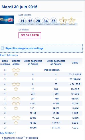 Résultat Tirage Euro Millions du Mardi 30 juin 2015