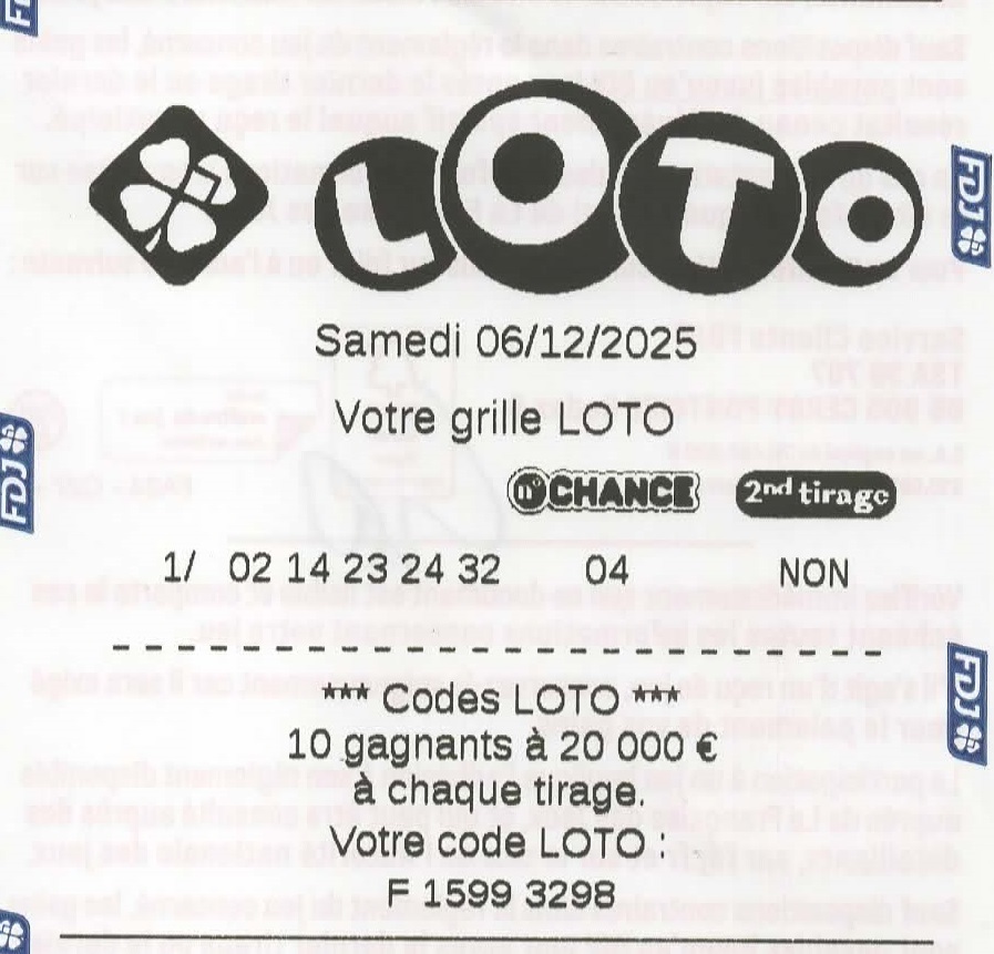 Info : même si les numéros ou lettres sont illisibles sur le ticket celui-ci est toujours valable car la fdj possède plusieurs moyens de contrôle sur le ticket. Ce sont justement ces informations que je retire en recadrant la photo du ticket (suite à des vols ! Ne mettez jamais sur les réseaux sociaux une photo de votre ticket gagnant, on peut facilement l’encaisser à votre place !!! (pour des petits gains)