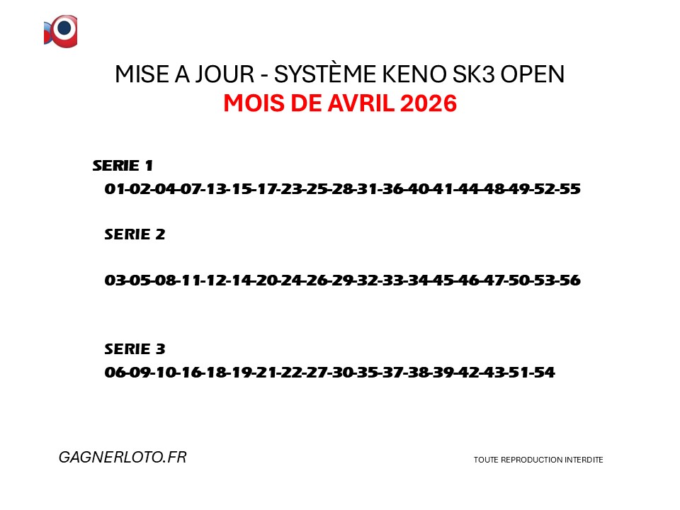 Je vous prie de trouver ci-dessous, en fonction des loteries, les 3 numéros de chance que j’ai calculé pour la semaine à venir. A utiliser uniquement à partir de demain, lundi. Faites en bon usage !