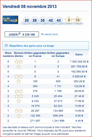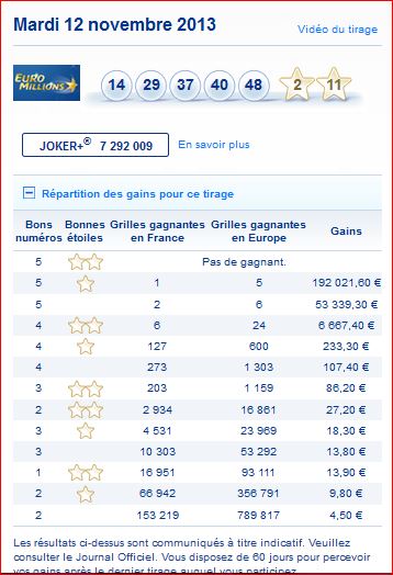 Seuls les résultats des tirages publiés au Journal Officiel font foi.