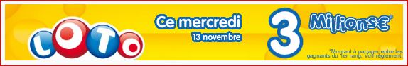 Prochain tirage du loto lundi 11 novembre 2013 cagnotte de 2 millions €